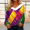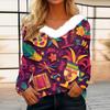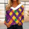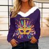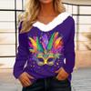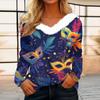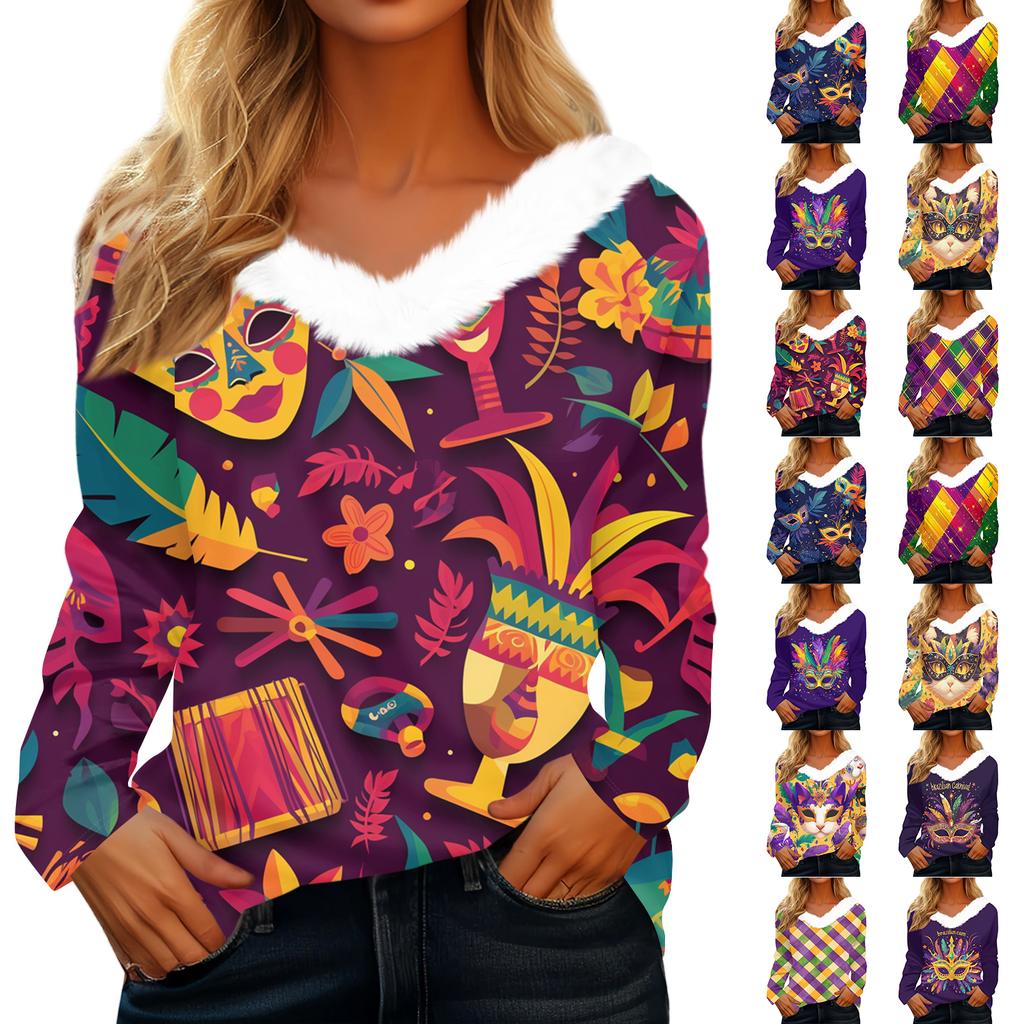 Dámský volný ležérní top s dlouhým rukávem a potiskem, plyšový límec ve tvaru V, top s dlouhým rukávem — koupit online v obchodě na marketplace Joom
