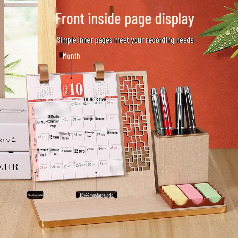 2026 Desk Calendar: Multifunctional Wooden Stand with Pen Holder & Self-Discipline Planner - Exquisite Gift Set, Customizable