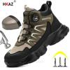 Rotating Button Work Shoes For Men Anti Puncture Work Sneakers Waterproof Black Work Safety Shoes Non Slip Steel Toe Boots Black