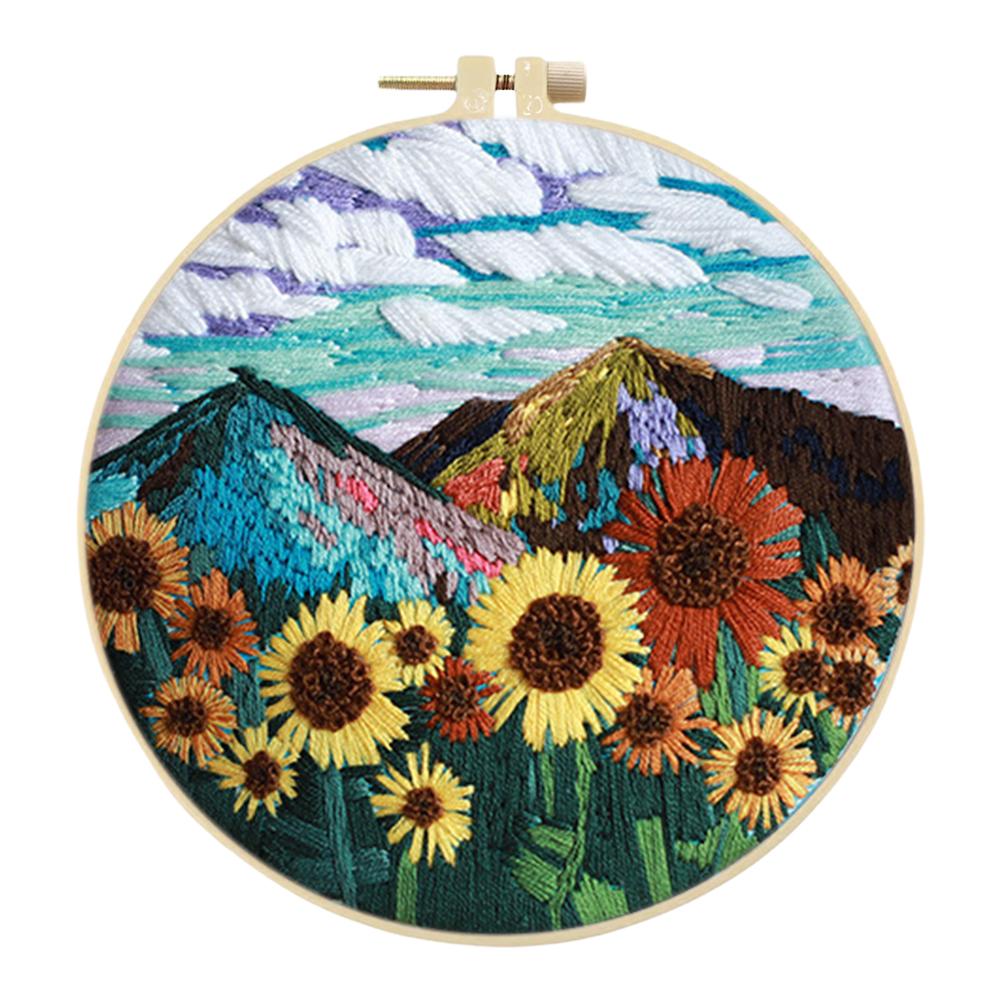 Flowers Stamped Cross Stitch Embroidery Kits with Hoop Cloth Color Thread