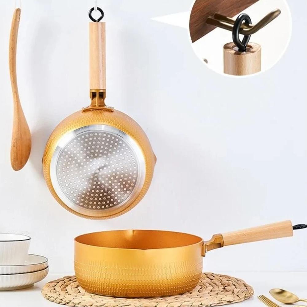 18/20/24cm Gold Soup pot Japanese Snow Saucepan Non-stick Frying Pan wok wood handle Home Milk Sauce Cooking Kitchen Cookware