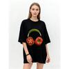 Nadměrné tričko černé s potiskem duhových sluchátek, ležérní streetwearový módní top pro ženy a muže, pro milovníky hudby, pro každodenní nošení