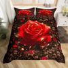 Rose Floral Duvet Cover Queen Twin for Women Girls Couple 3D Red Rose Wine Glass Bedding Set Luxury Botanical Comforter Cover