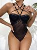 Sexy Crotchless Lingerie Women Lace Hollow Bodysuit Erotic Costumes Teddy Stripper Outfit Transparent Exotic Underwear Suit