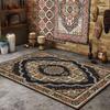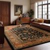 Detaily v barvě páleného zlata Tmavě černý koberec Koberec ve stylu Heriz Orientální koberec Moderní design poloviny století Jedinečný design Koberec omyvatelný Cenově dostupný koberec