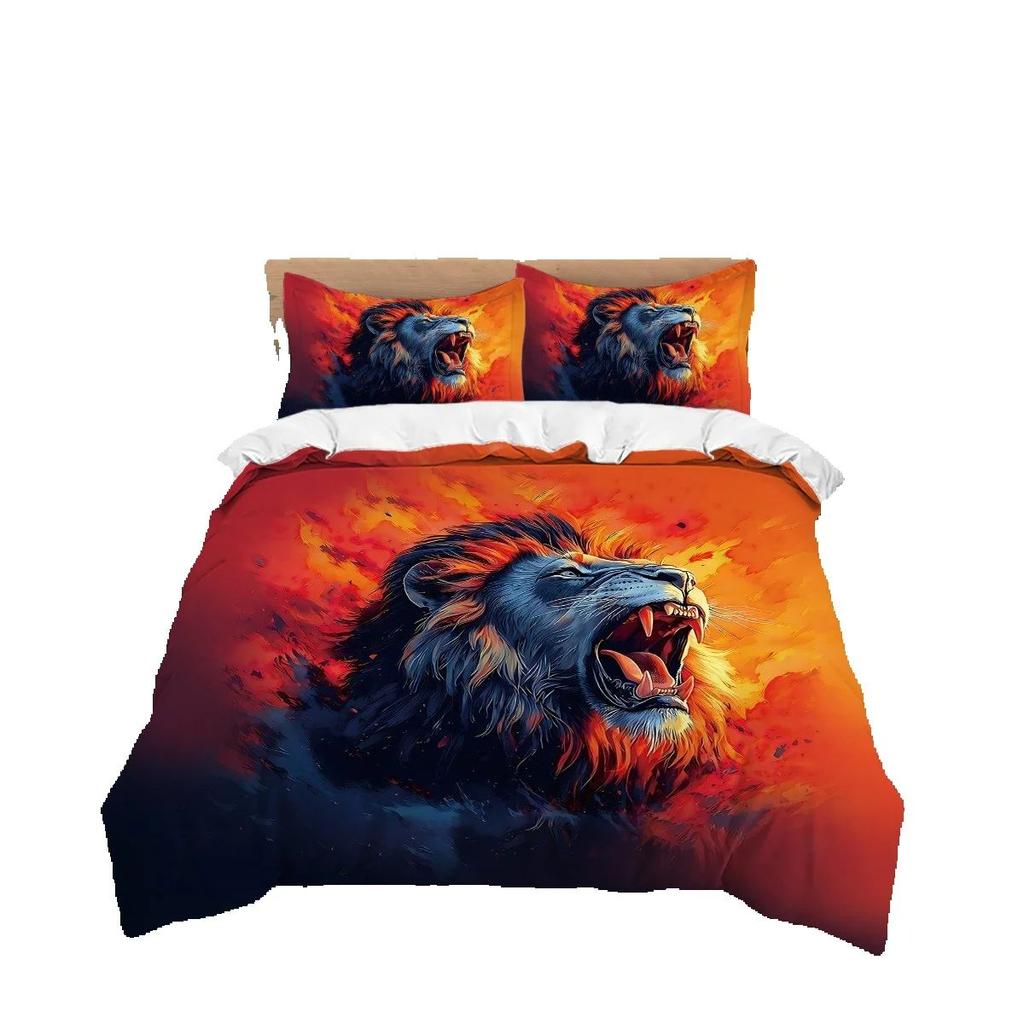 Lion Bedding Sets Lion Animal Pattern Bedding Sets 2/3Pcs Home Bedclothes Super King Cover Pillowcase Comforter Textiles Duvet
