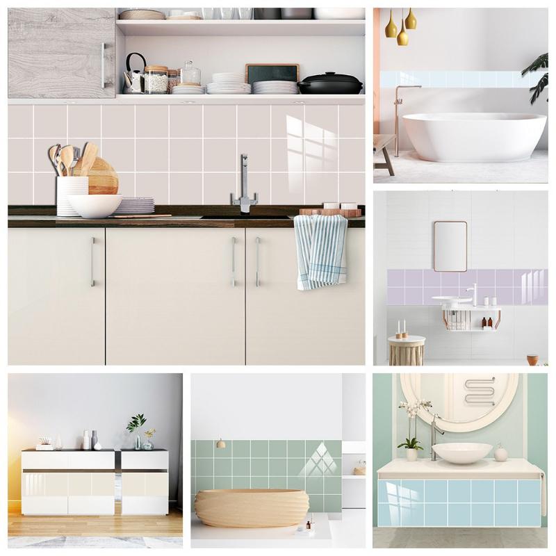 10pcs Set Morandi Solid Colors Self Adhesive Waterproof and Oil Resistant Wall Stickers for Kitchen and Bathroom Home Decoration — koupit online v obchodě na marketplace Joom
