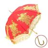 Bright Red Embroidered Bridal Wedding Umbrella with Lace Edge and Long Handle — koupit online v obchodě na marketplace Joom