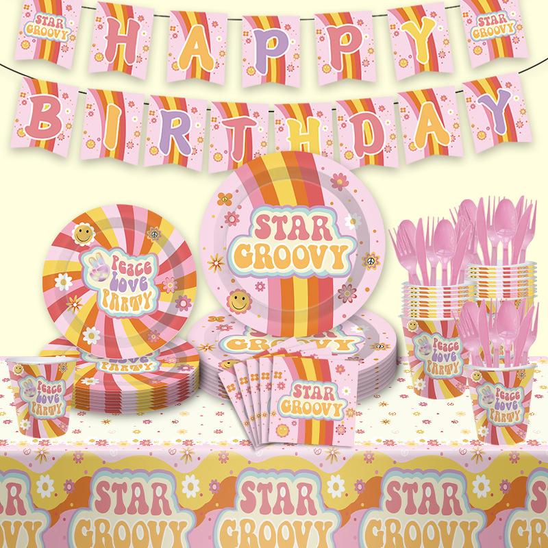 Hippie Daisy Bohemian Theme Party Cutlery Disposable Paper Plates Paper Cups Paper Towels Party Decorations