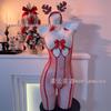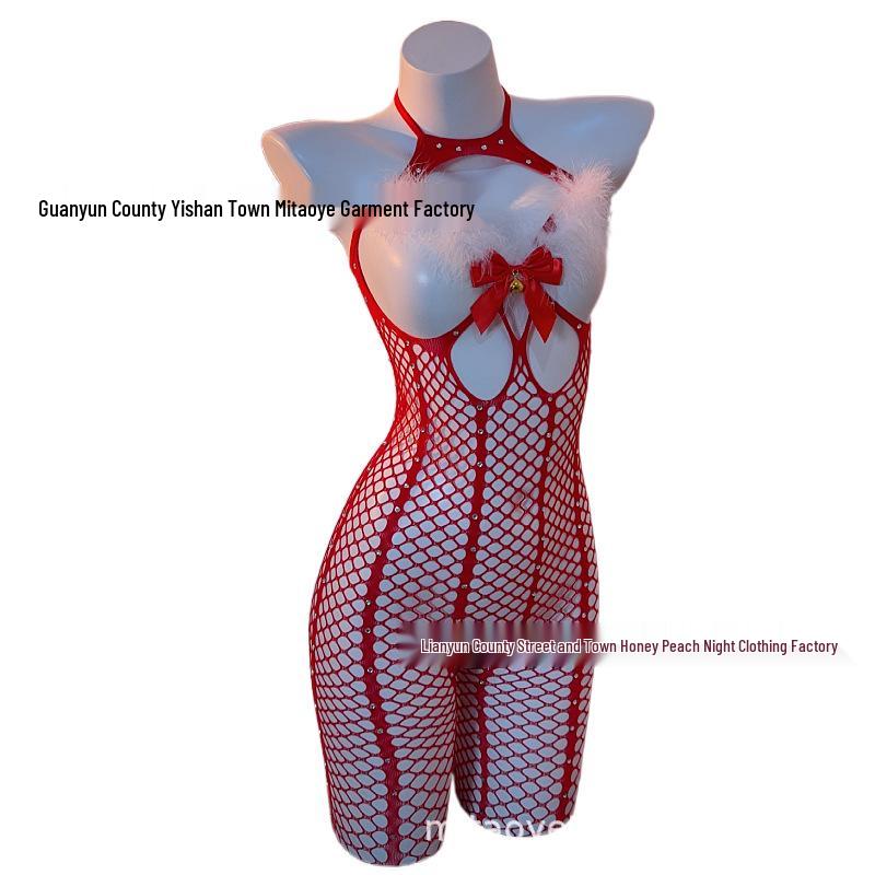 Festive Red Striped Bodystocking with Plush and Hot Drill Accents — koupit online v obchodě na marketplace Joom