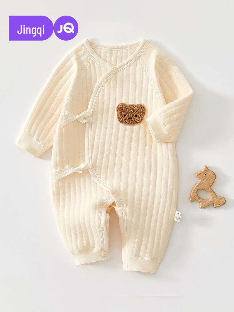 Jingqi Cotton-Padded Newborn Romper: Autumn/Winter Side-Opening Pajamas