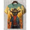 Zajímavé Kreativní Kočičí Grafika Pánské Módní Letní Krátký Rukáv 3D Tištěné Ležérní Osobnost Univerzální Nadměrná Velikost Tričko