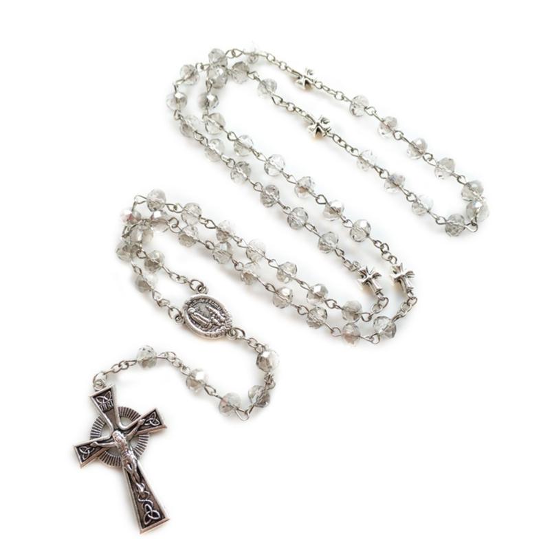 Gray Crystal Rosary Necklaces Catholic Crucifix Cross Pendant Long Necklaces Religious Jewelry for Women Men Gift — koupit online v obchodě na marketplace Joom