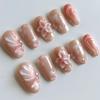 24PCS Autumn Winter Almond Press on Nails Luxury 3D Golden Roses Retro Red French Fake Nails for Women Sweet Amber Flowers Nails — koupit online v obchodě na marketplace Joom