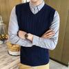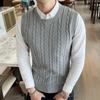 Autumn and Winter Men's Woolen Vest V-neck Sleeveless Sweater Vest Thickened Twist Solid Color Knitted Waistcoat Tide Waistcoat