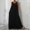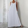 Dámské módní jednobarevné bez rukávů s výstřihem do V, ležérní volné pulovrové dlouhé šaty