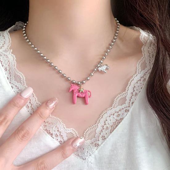 This elegant horse pendant necklace is designed for fashion enthusiasts seeking a unique accessory that complements both casual and formal wear. Featuring a detailed horse design with a bright, eye-catching coating, it adds a touch of charm and sophistication to any outfit. Versatile and stylish, this necklace effortlessly enhances your look whether you're dressing up for special occasions or elevating everyday attire.