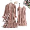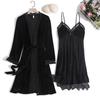 Velurový krajkový župan Noční prádlo Dámský Twinset Svatební Svatební župan Set S výstřihem do V Noční prádlo Ležérní Sexy Domácí Župánek Společenské oblečení — koupit online v obchodě na marketplace Joom