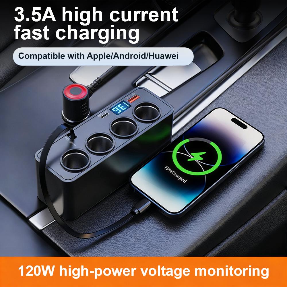 Quick Charge Multifunctional Car Digital Display Vehicle Charger Fast Charging Cable Auto Charger Adapter USB Fast Charging Universal QC3.0+PD TypeC — koupit online v obchodě na marketplace Joom