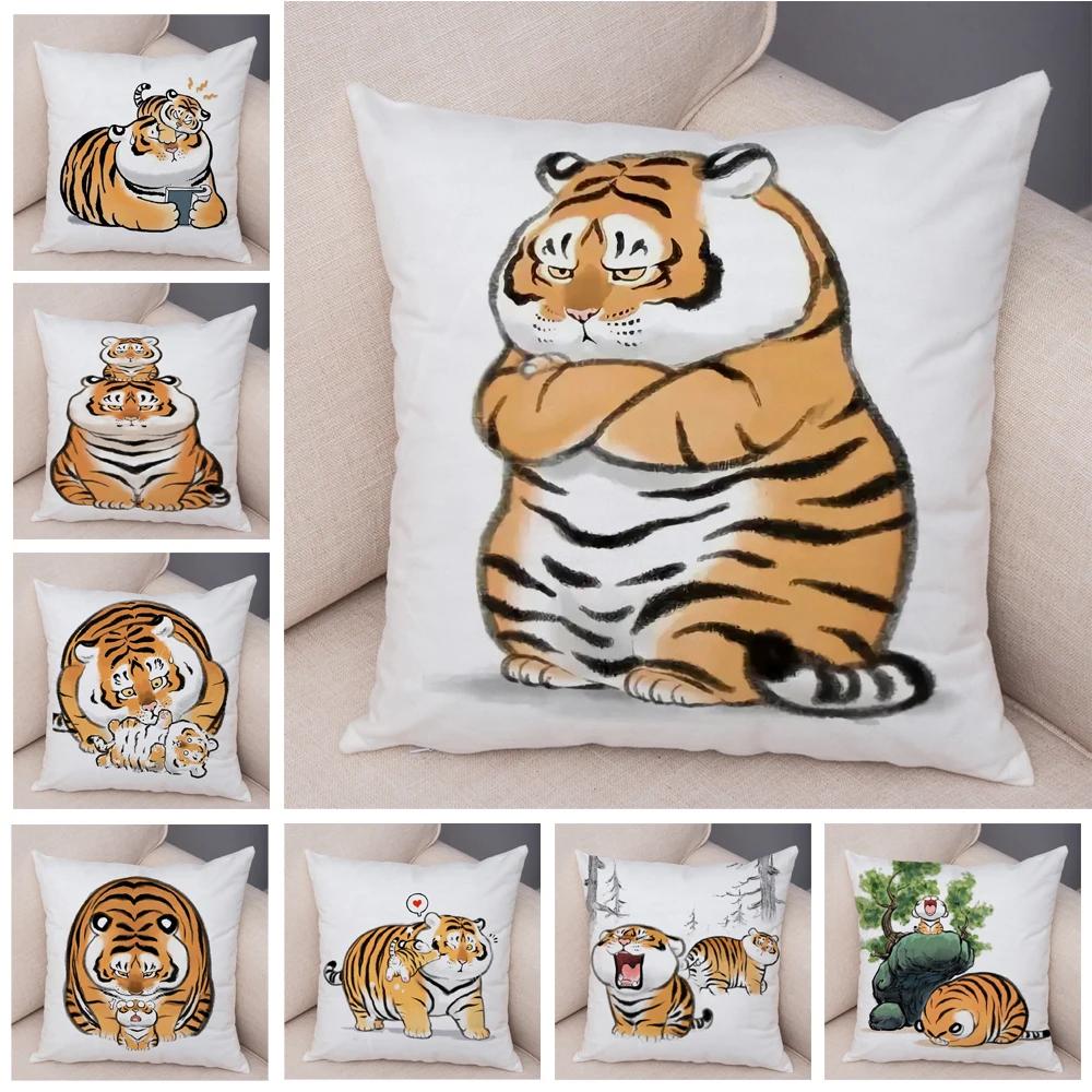 Chinese Ink Funny Fat Tiger Cushion Cover Decor Cute Cartoon Animal Soft Plush Pillow Case for Sofa Home Car Throw Pillowcase