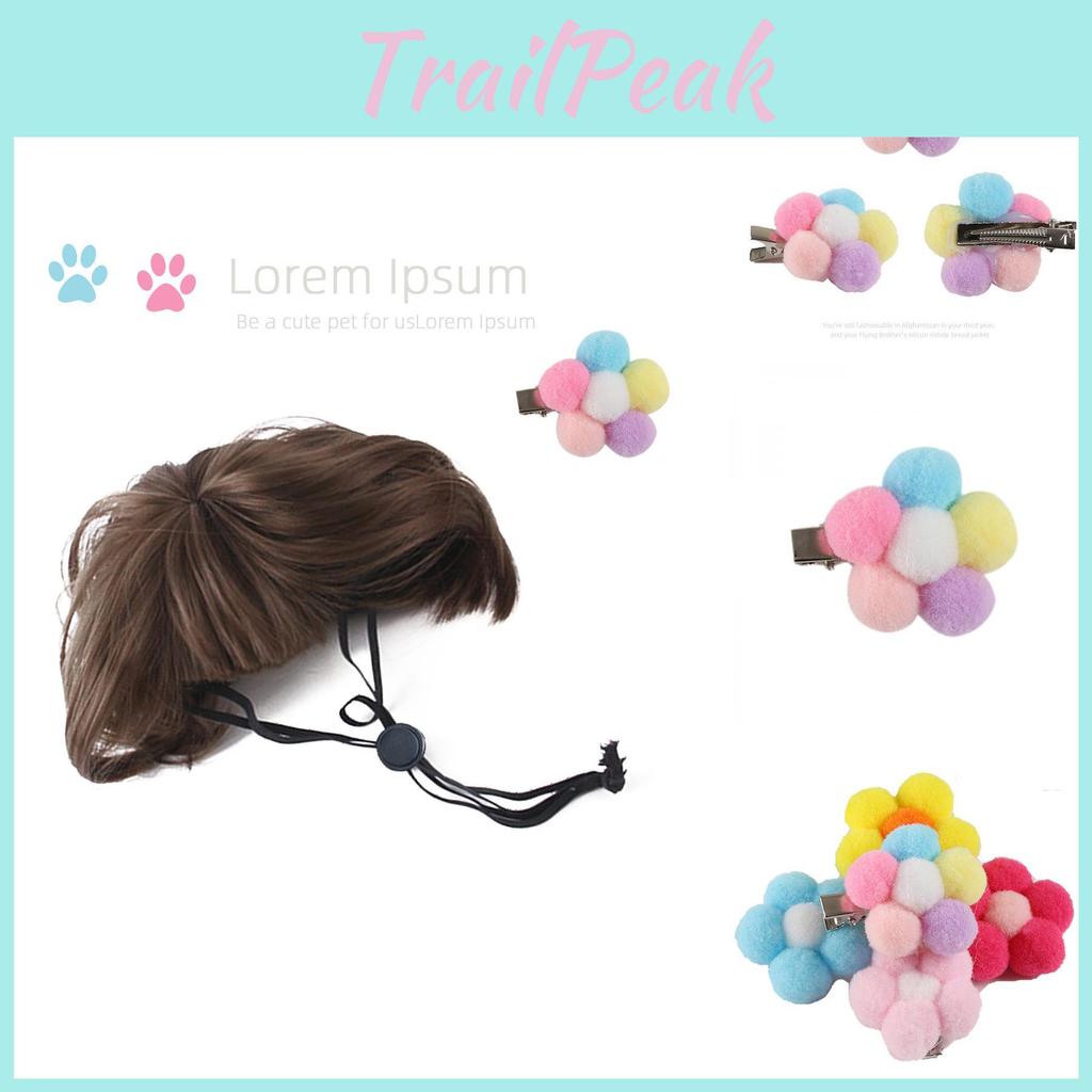Charming Pet Wig Accessories Including Brown Bob Wig And Vibrant Flower Clips For Dogs And Cats — koupit online v obchodě na marketplace Joom