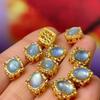 1Pc, Natural Stone Turquoise Aquamarine beads with hole, Boho handcrafted barrel-shaped beads accented with golden edges for Jewelry Making DIY — koupit online v obchodě na marketplace Joom