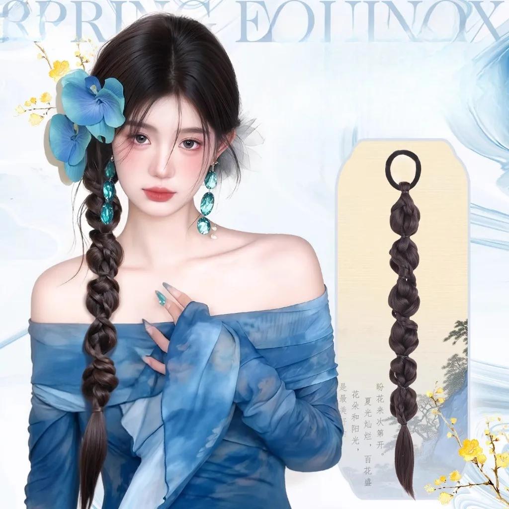 70cm Chinese Style Synthetic Braided Ponytail Wig Women Long Double Twisted Boxing Braids Hair Extension — koupit online v obchodě na marketplace Joom