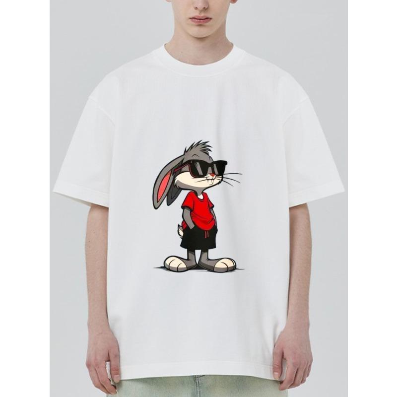 Tričko s kulatým výstřihem Bílé Kreslený potisk Bugs Bunny Ležérní oblečení pro muže a ženy Streetwearová móda Letní outfit — koupit online v obchodě na marketplace Joom