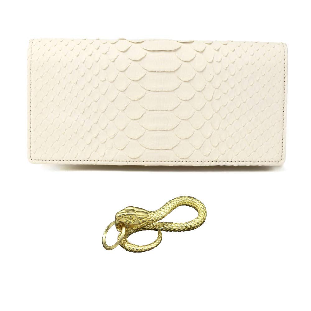 SakuraZen White Snake Long Wallet, Genuine Snake Leather Wallet, Snake Pattern, Men's Wallet, Increases Your Fortune, Made in Japan (Golden Snake