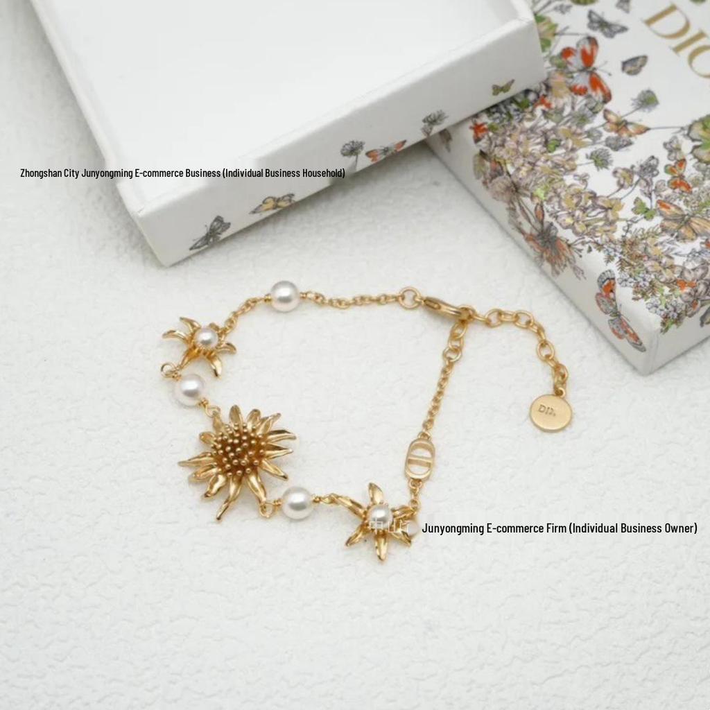 Sunflower Patchwork Pearl Bracelet & Earrings Set with Letter CD Design. — koupit online v obchodě na marketplace Joom