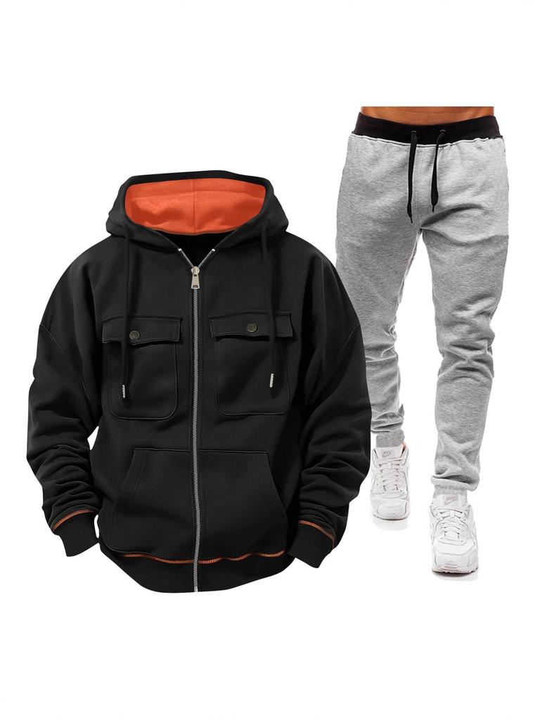 Pánská fleecová mikina s kapucí, sada se zapínáním na zip s dvojitou kapsou a plyšovou podšívkou - Ležérní sportovní oblečení — koupit online v obchodě na marketplace Joom