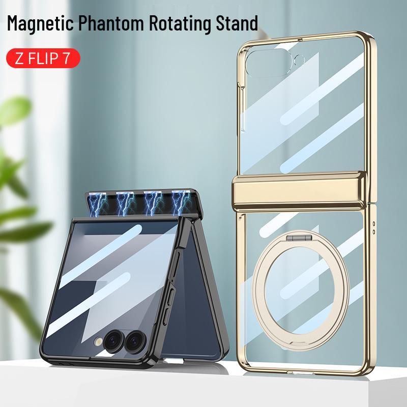 Samsung Z Flip7 Case: 360° Rotating Stand with Wireless Charging, Flip6 Compatible, Transparent Protective Hinge Cover