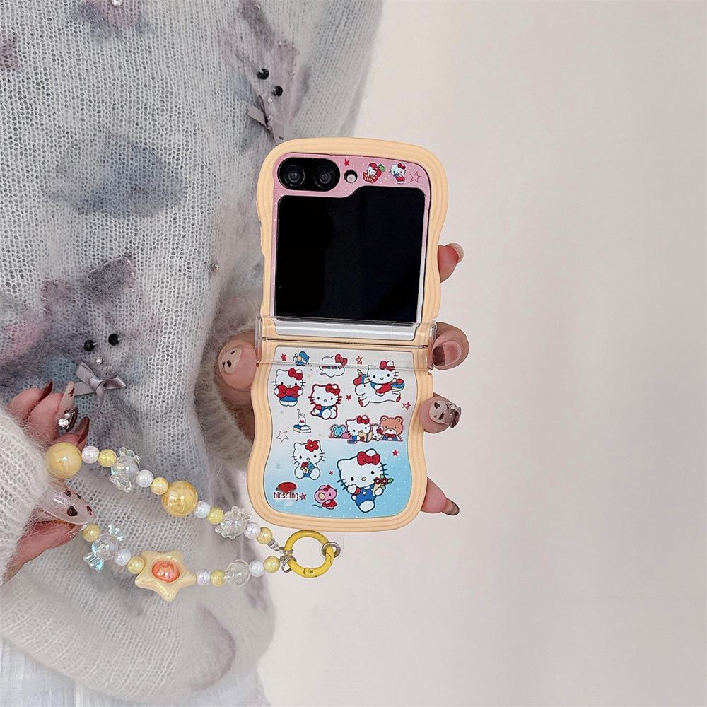 Hello KT Cat Folding Protective Case with Lanyard for Samsung Galaxy Z Flip Series