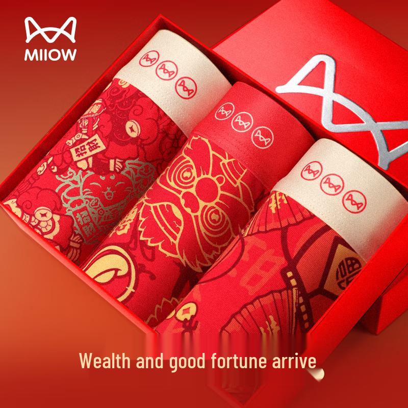 Maoren Men's Lucky Red Cotton Boxer Briefs