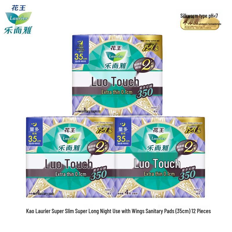 Laurier Kao Zero Touch Ultra-Thin Night Sanitary Napkins 35cm, 12 Count