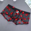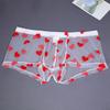 Men Boxer Underwear Elastic Mid-rise Perspective Hollow Mesh Design Boxer Briefs Heart Pattern Underwear Anniversary Gift