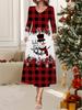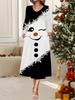 2025 Autumn and Winter New Women Casual Fashion Dress 3D Snowman Pattern Print Long Sleeve V-Neck A-Line Dresses Christmas Gift