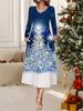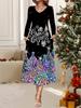 2025 Autumn and Winter New Women Casual Fashion Dress 3D Snowman Pattern Print Long Sleeve V-Neck A-Line Dresses Christmas Gift — koupit online v obchodě na marketplace Joom