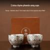Cha Xun Enamel Gilded Silver Ceramic Tea Set - Lotus & Phoenix (1 Pot, 2 Cups)
