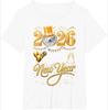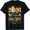 New Black 2026 New Year T-Shirt Gold Disco Ball Hat Champagne Glasses Letter Print Women's Short-Sleeved Loose-Fit Crew Neck Top