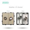 BSEED DIY EU Standard TV Satellite USB Sockets Button Switches With Crystal Glass Frame Panel Gold Home Improvement DIY Free