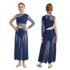 Dívčí moderní lyrické taneční šaty s výstřihem, patchworkovými boky, rozparkem a asymetrickým designem z průsvitné síťoviny