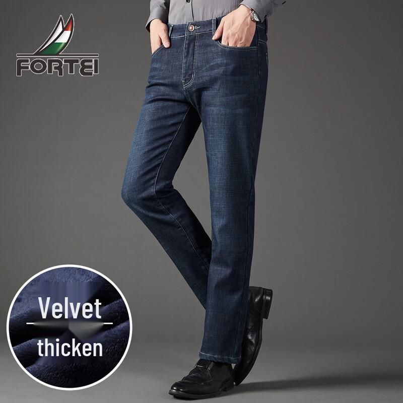 Futing Men's Thermal Fleece-Lined Straight-Leg Stretch Jeans — koupit online v obchodě na marketplace Joom