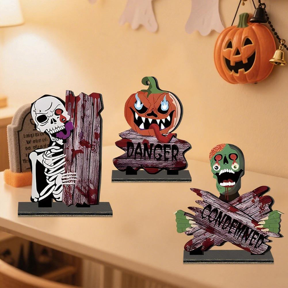 Terrifying Visual Impact: Crafted from Pinewood, this Halloween ornament features exaggerated skeleton proportions and a ferocious expression, creating a visually striking and terrifying effect. The solid wood texture enhances its dark, high-end appearance, with natural wood grain and old-fashioned craftsmanship adding durability and texture.