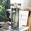 Nordic Light Luxury Crystal White Glass Vase with Wooden Holder for Fresh Flowers - Living Room Decor