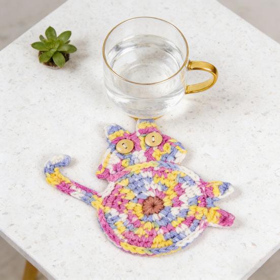 Handwoven Cat Coasters Cute Knitted Cat Shaped Coffee Coaster Tabletop Protection Insulation Mat for Home Office Decor — koupit online v obchodě na marketplace Joom