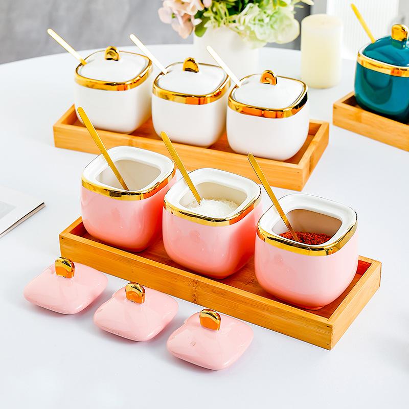 Salt MSG seasoning jar seasoning box ceramic high-end kitchen supplies household chili oil jar combination set — koupit online v obchodě na marketplace Joom