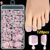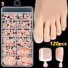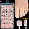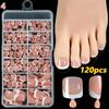 120Pcs French Short Square Artificial Press On Toenails Nude Pink Full Cover False Toe Nails Fake Toe Nail Extension For Women
