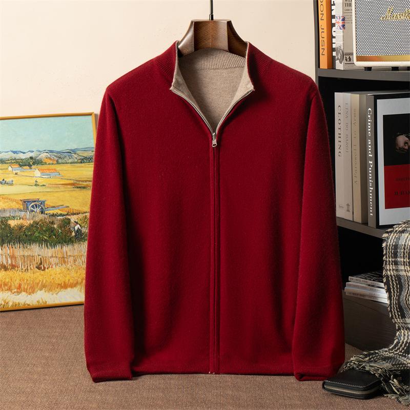 Twelve-pin heavy-duty thickened double-sided double-pierced cashmere cardigan men's stand-up neck sweater jacket