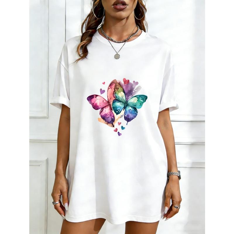 Nadměrné Tričko Šaty Černé Duhový Motýl A Srdce Potisk Ležérní Streetwear Pro Ženy — koupit online v obchodě na marketplace Joom